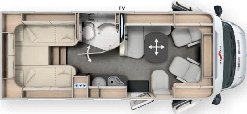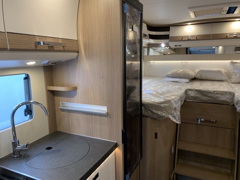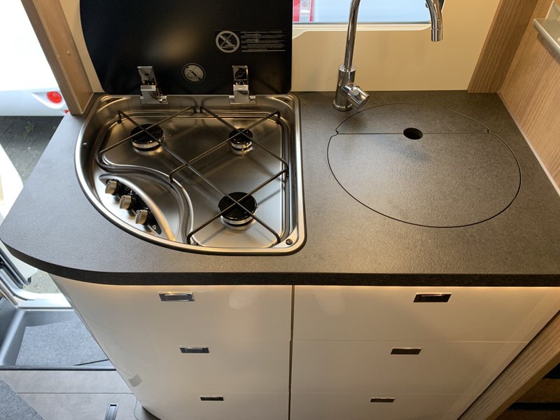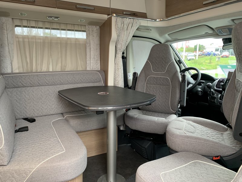 - Komfort-Paket Teilintegriert (Malibu Rückleuchten mit LED-Leuchtband, Große Garagentür auf Fahrerseite, XL-Aufbautür ?premium two 2.0? (Breite 63 cm) mit Doppelverriegelung, Fenster- und Insektenschutzrollo, Fahrerhausverdunklungssystem: Plissee an Seitenscheiben und Frontscheibe, Dachluke Midi-Heki über L-Wohnsitzgruppe, Indirekte Ambientebeleuchtung Wohnraum und Küche in LED-Technik, Digitales Bedienpanel Truma CP Plus, Lithium-Ionen-Batterie 90 Ah inkl. Batteriecomputer anstelle 80 Ah Gel-Batterie, SOG-Toilettenentlüftung, Abwasserschlauchset zur komfortablen Entsorgung, USB-Steckdose im Dachstauschrank über Heckbett)