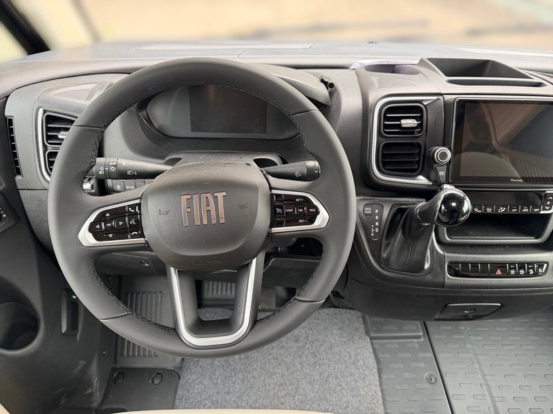 - Chassis-Plus-Paket Fiat (Lenkrad und Schaltknauf in Textilleder, Armaturenbrettveredelung: Lüftungsgitter in chrom, 16 Zoll Alufelgen Fiat für f40 heavy Chassis / f35 i.V.m. 9G-Wandlerautomatik, Multifunktionslenkrad (Radiofernbedienung über Steuertasten), Klimaautomatik Fahrerhaus, Induktive Handyladeschale, Digitales Kombiinstrument mit Farbdisplay im Armaturenbrett, Elektrische Feststellbremse)