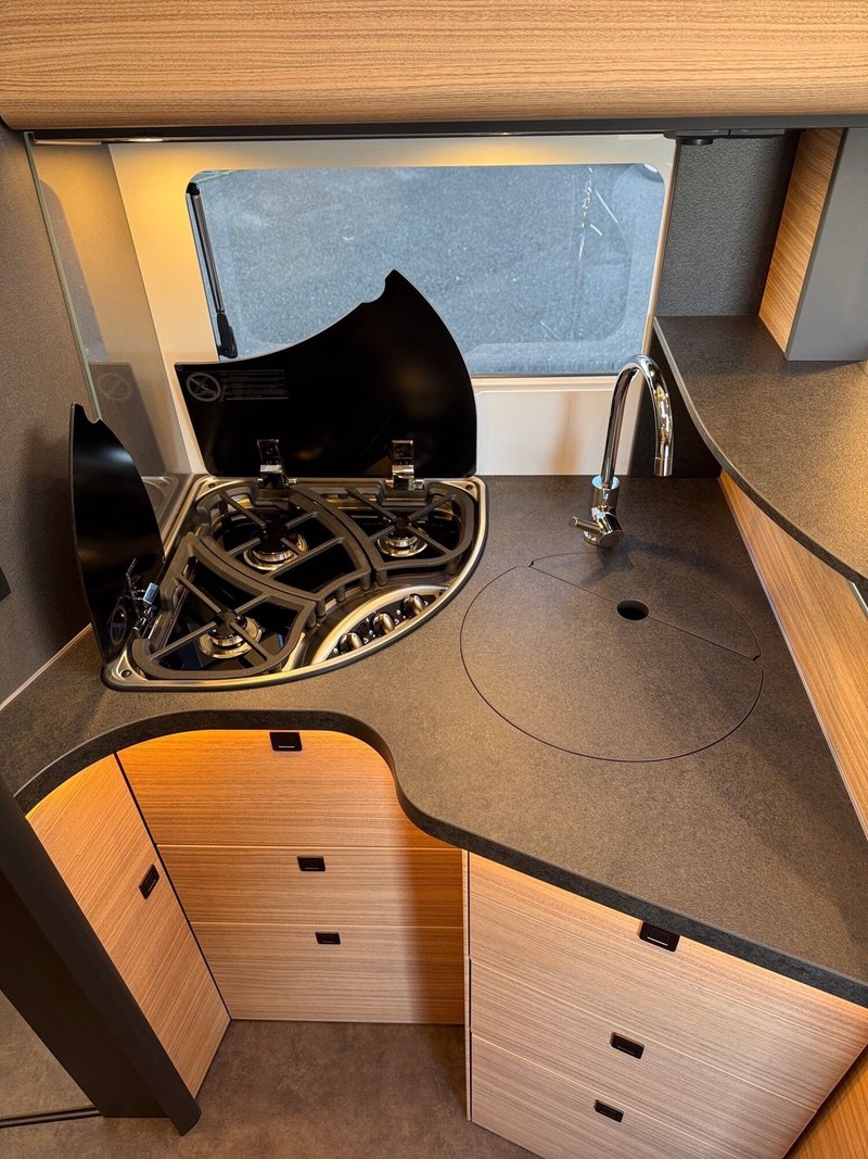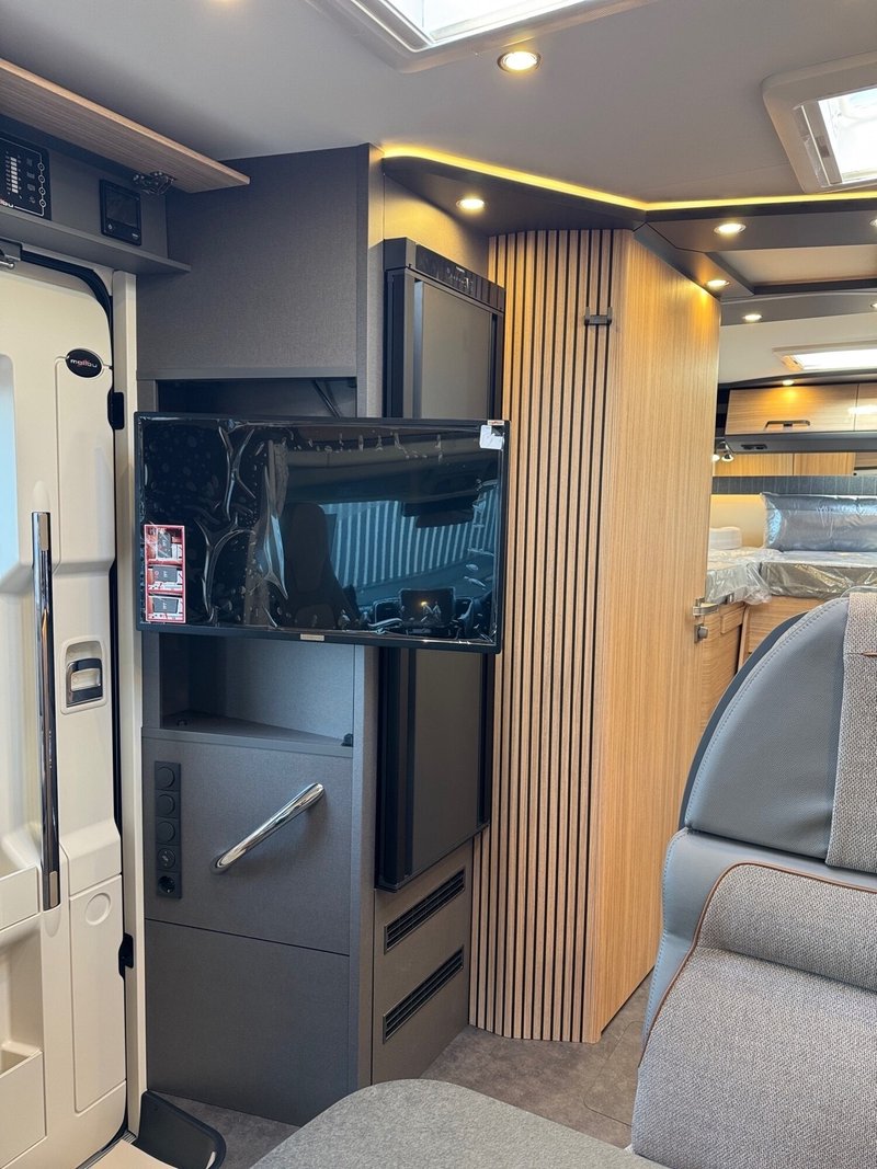 - Chassis-Komfort-Paket Fiat comfort (Malibu Radzierblenden, Skid-Plate schwarz, Nebelscheinwerfer mit Abbiegelicht, Scheinwerferrahmen in schwarz, Tempomat, Zentralverriegelung Fahrerhaustür, Außenspiegel elektrisch verstell- und beheizbar, elektr. Fensterheber, Ladebooster, Kraftstofftank 90 Liter, Fahrerhauskomfortsitze mit Neigungs- und Höhenverstellung (vorn / hinten), Radiovorbereitung mit Dachantenne mit DAB+, Lautsprecher (4x), DVB-T2 Empfang, Pioneer Radio/Moniceiver 6,8" inkl. DAB+, Malibu Rückleuchten mit LED-Leuchtband, Große Garagentür auf Fahrerseite, XL-Aufbautür "premium two 2.0" (Breite 63 cm) mit Doppelverriegelung, Fenster- und Insektenschutzrollo, Fahrerhausverdunklungssystem: Plissee an Seitenscheiben und Frontscheibe, Dachluke Midi-Heki über L-Wohnsitzgruppe, Indirekte Ambientebeleuchtung Wohnraum und Küche in LED-Technik, Digitales Bedienpanel Truma CP Plus, SOG-Toilettenentlüftung, Abwasserschlauchset zur komfortablen Entsorgung, USB-Steckdose im Dachstauschrank über Heckbett, Vorbereitung Rückfahrkamera, Vorbereitung Solaranlage, Vorbereitung Sat-Anlage, Vorbereitung TV)