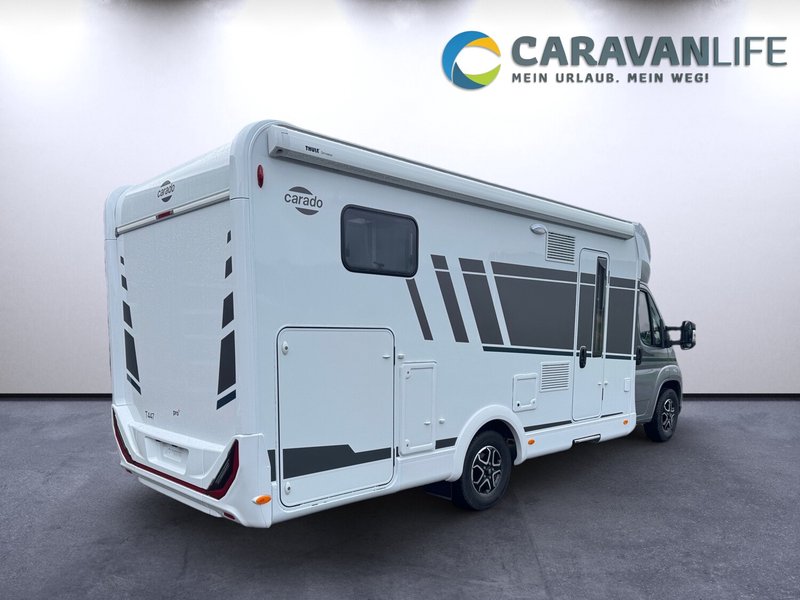 - pro+ Paket T447 & T448 & T457 (Optik Paket 1 | Stoßfänger lackiert, Optik Paket 2 | Alufelgen, Chassisfarbe Artense Grau Metallic, Basic Paket, Faltverdunkelung Fahrerhaus, Fenster in Fronthaube, Großer Kühlschrank 156 l mit separatem Frosterfach 29 l, Abwassertank isoliert, Markise 4,5 m, Rahmenfenster, Design Applikation Heck, Zweite Außenstauraumklappe (Größe modellabhängig), Beklebung pro+)