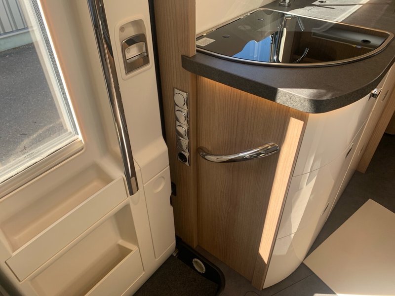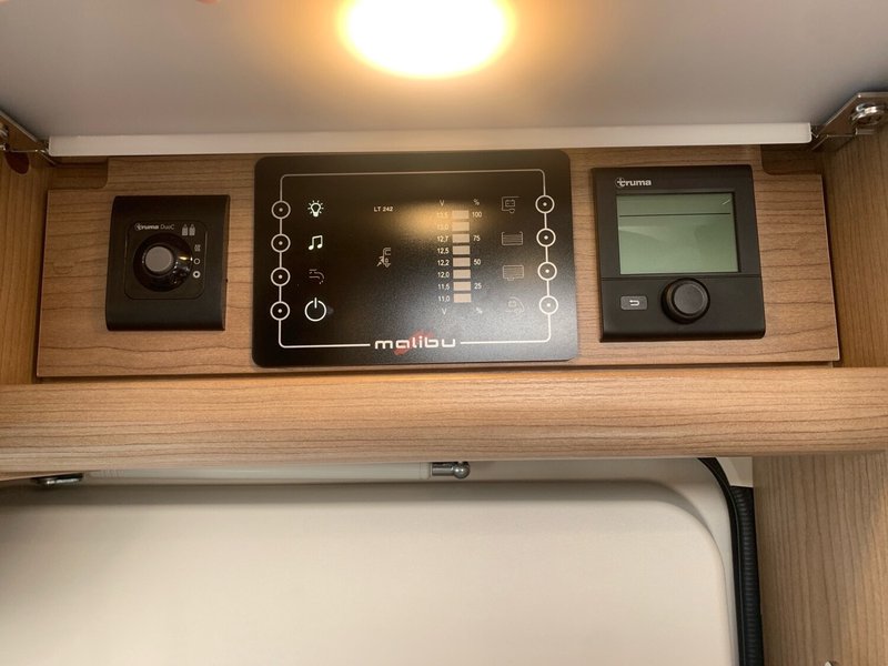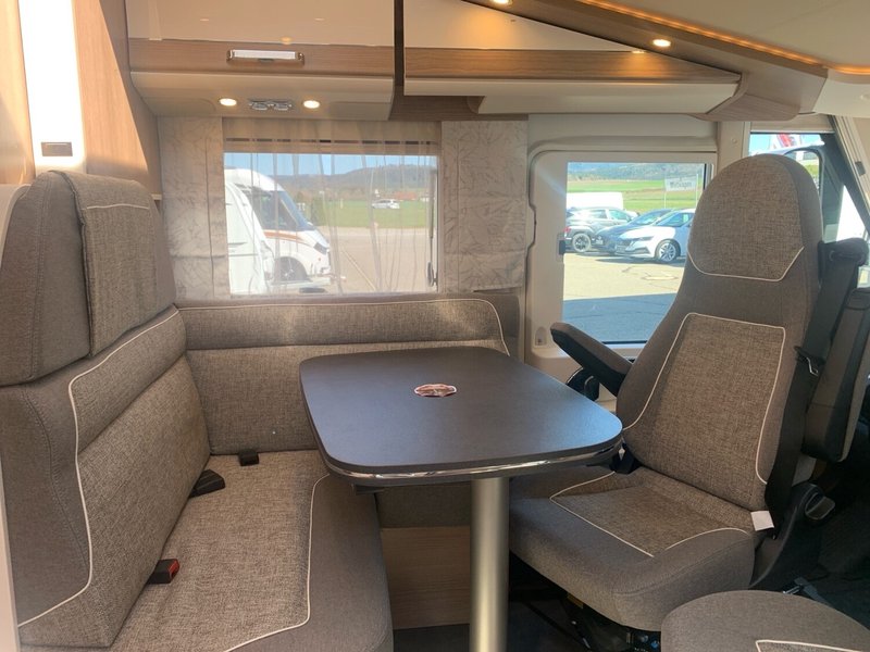 - Komfort-Paket Integriert (Malibu Rückleuchten mit LED-Leuchtband, Große Garagentür auf Fahrerseite, XL-Aufbautür ?premium two 2.0? (Breite 63 cm) mit Doppelverriegelung, Fenster- und Insektenschutzrollo, Hohlwaben-Isolierfrontplissee mit vertikaler Bedienung und Faltplissee Seitenscheiben, Dachluke Midi-Heki über L-Wohnsitzgruppe, Indirekte Ambientebeleuchtung Wohnraum und Küche in LED-Technik, Digitales Bedienpanel Truma CP Plus, Lithium-Ionen-Batterie 90 Ah inkl. Batteriecomputer anstelle 80 Ah Gel-Batterie, SOG-Toilettenentlüftung, Abwasserschlauchset zur komfortablen Entsorgung, USB-Steckdose im Dachstauschrank über Heckbett)